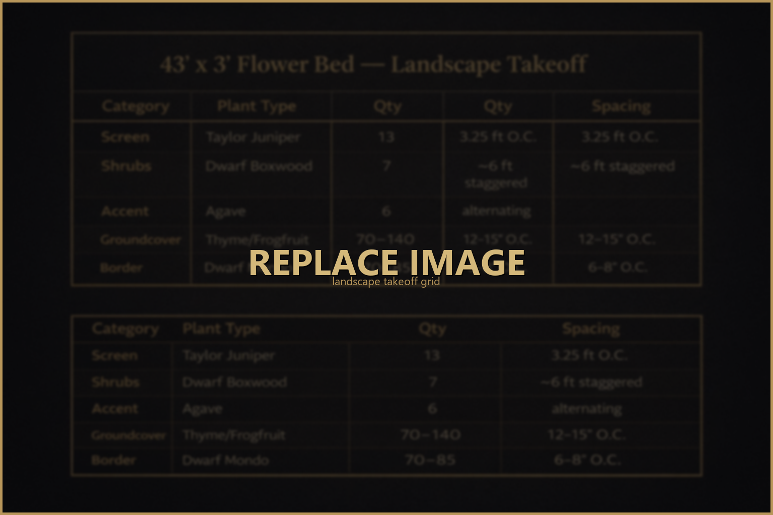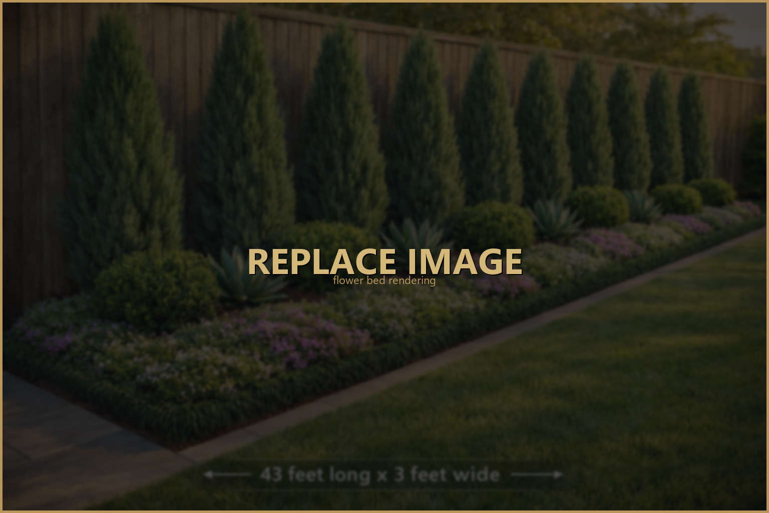 | Flower Bed | 43ft × 3ft, west fence |